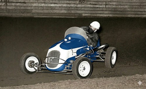 Big Jack O'Dea of Victoria in his Vic 65 Studebaker powered Midget.
