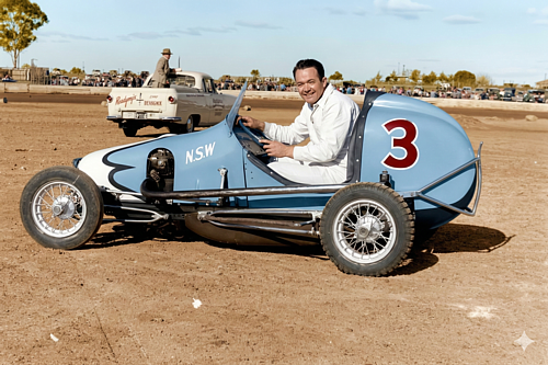 Bill Reynolds in the Harold Barnes Holden # 3 - this was the first Holden engined Midget to run in Sydney.