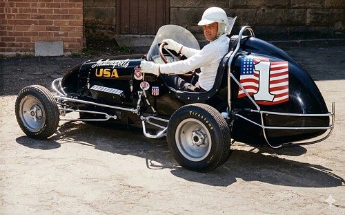 Ray Revell and his most famous Midget the ex Balch Offenhauser -
