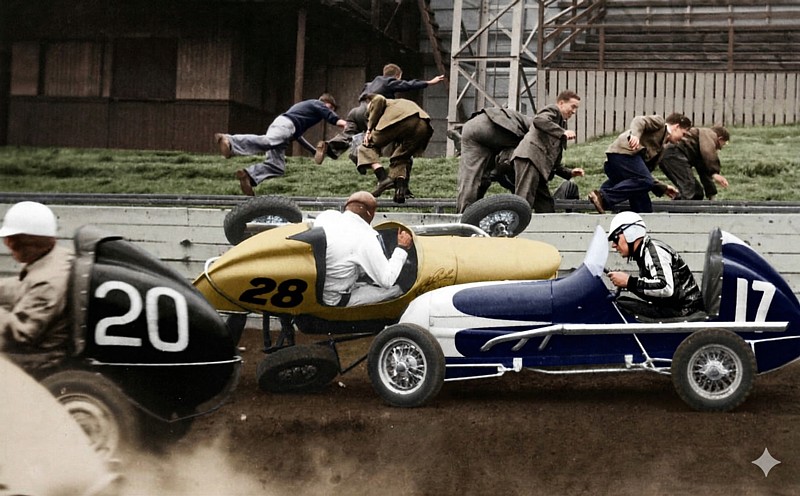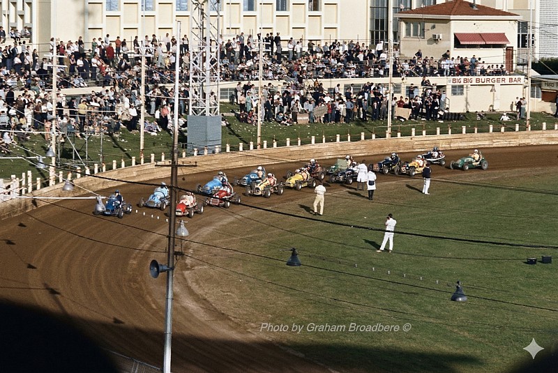Midgets at the Sydney Showground - shot from the Member's Stand .